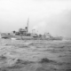 She returned to Halifax in November and, early in the following month, opened what was to become a schedule of convoy-escorting duties which lasted until the end of the war.  She was appointed Senior Officer of W-1 Group, a number of local escort ships, chiefly Algerines and corvettes, whose duty it was to lend support both to small coastal convoys and to the larger mid-ocean convoys during the coastal stages of their passages.  In the latter case, she and her group relieved the mid-ocean escorts off Newfoundland or, if they were outgoing convoys, they turned over to them ships they had escorted from New York, Halifax and Sydney.